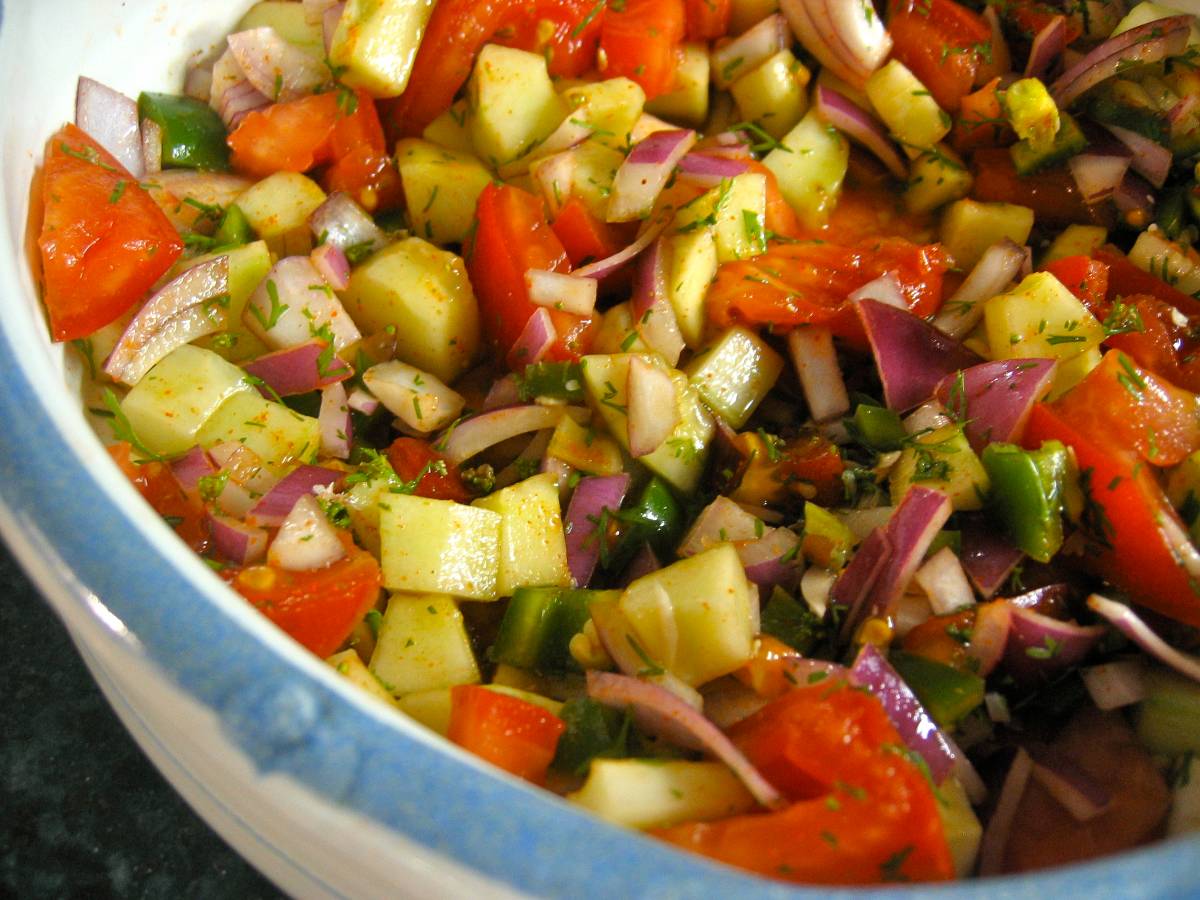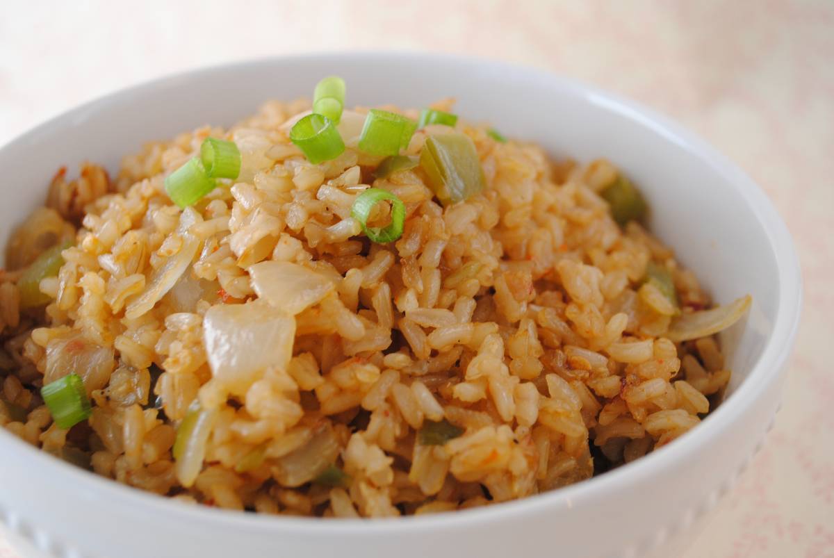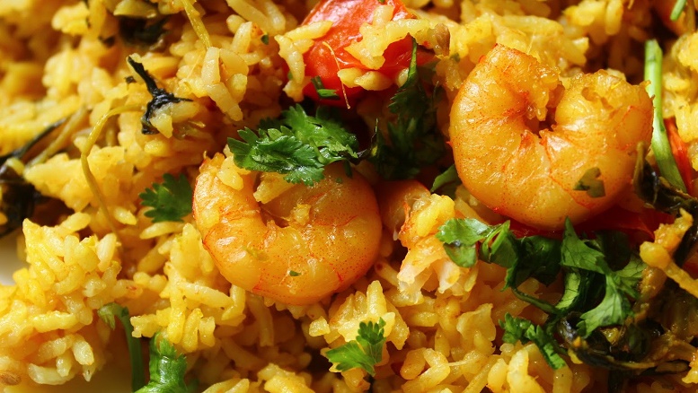Stir-fried basmati rice mixed with spices and herbs. Served with vegetables. -
